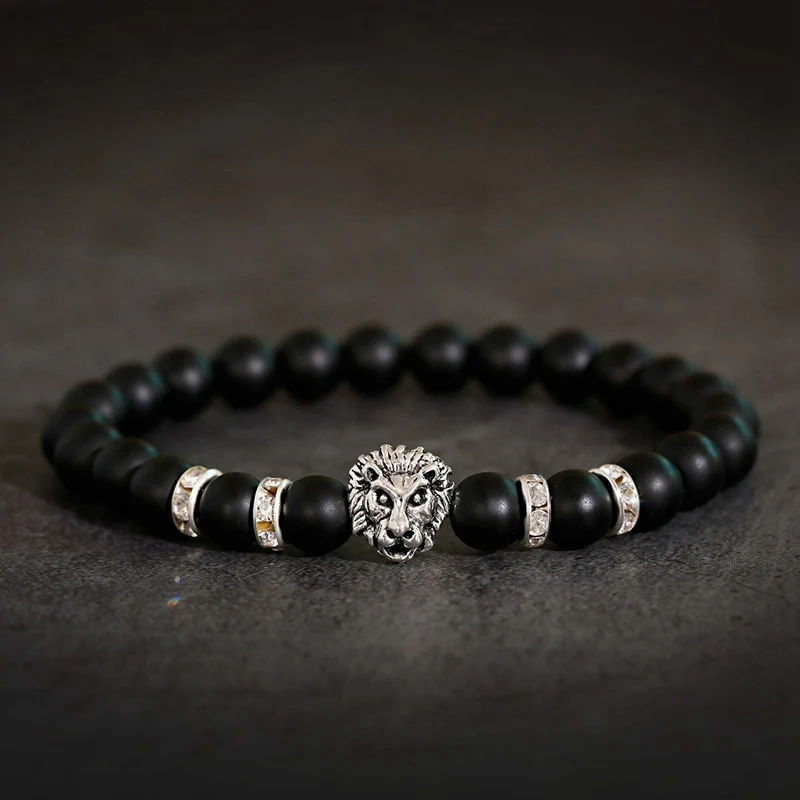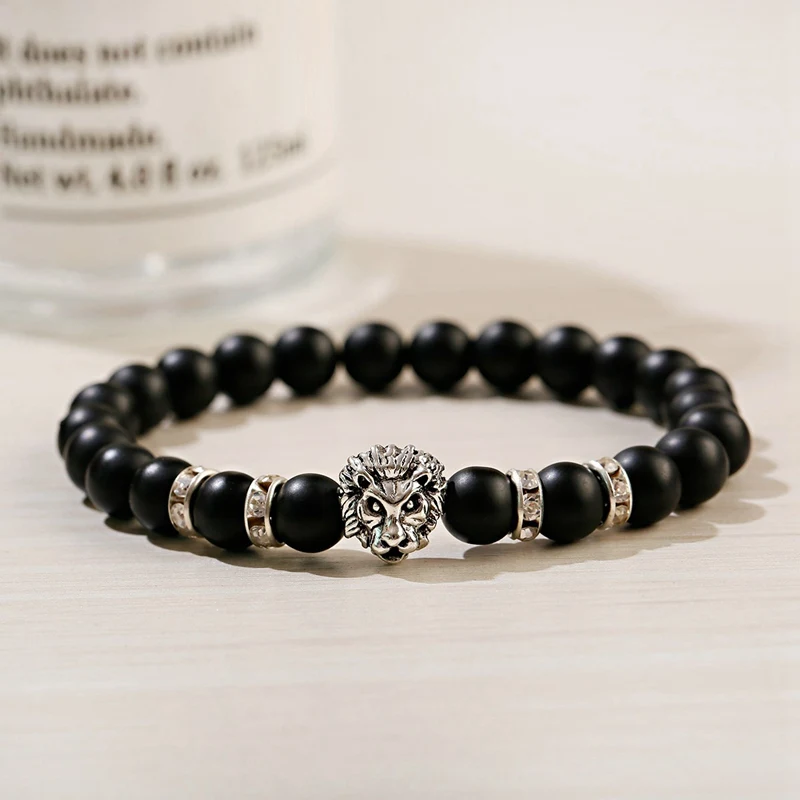 Classic Lion Bracelet Men Fashion Black Matte Stone Handmade Beaded Charm Bracelet Men Jewelry Pulsera Hombre